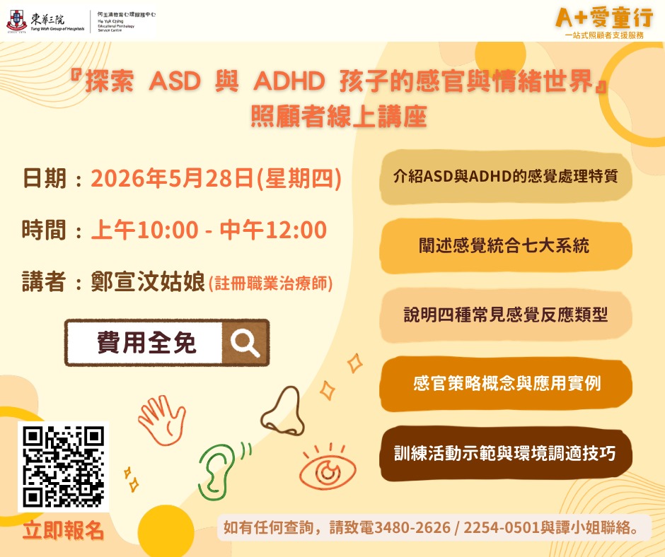 『探索ASD與ADHD孩子的感官與情緒世界』照顧者線上講座