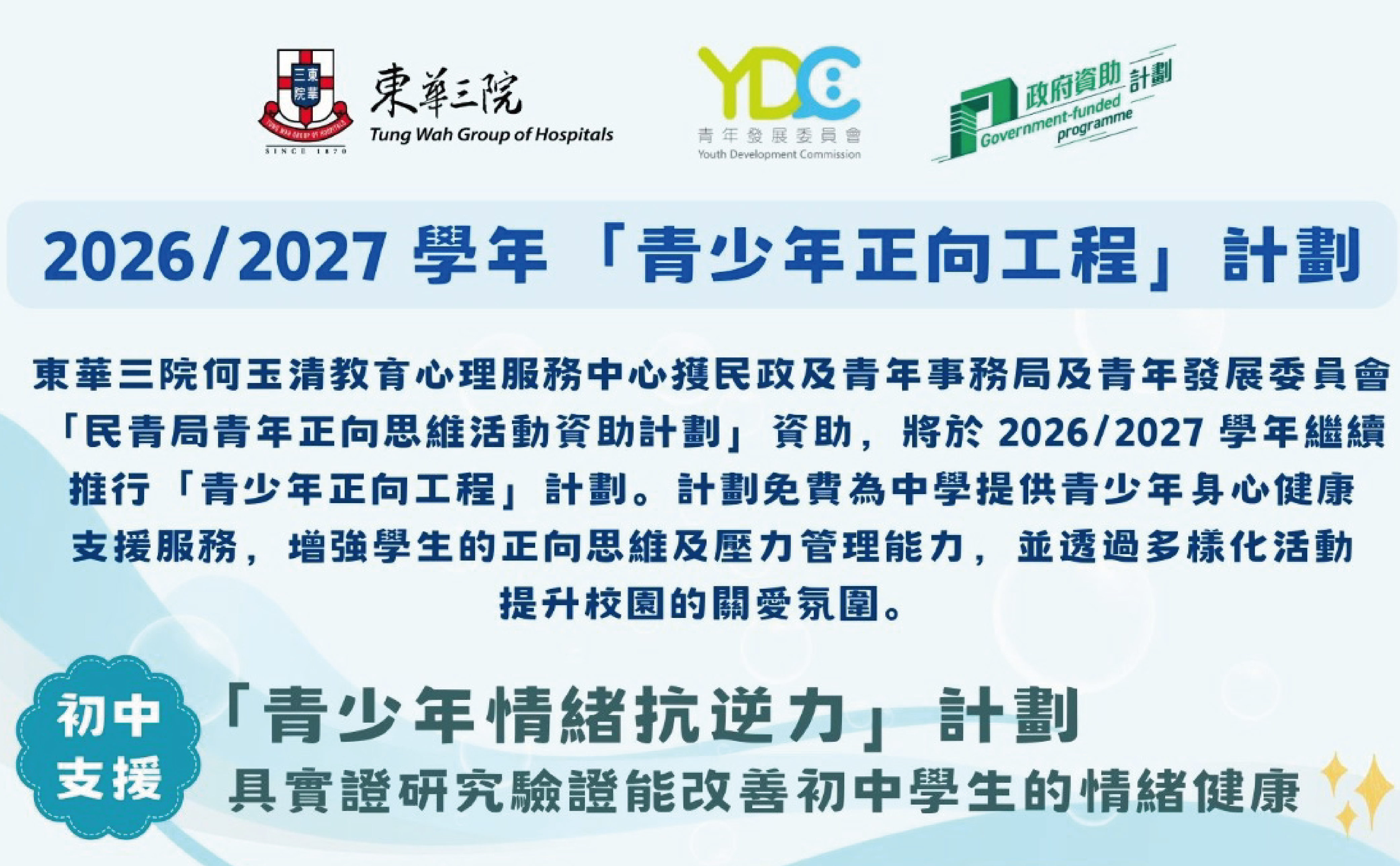 2026/2027學年「青少年正向工程」計劃
