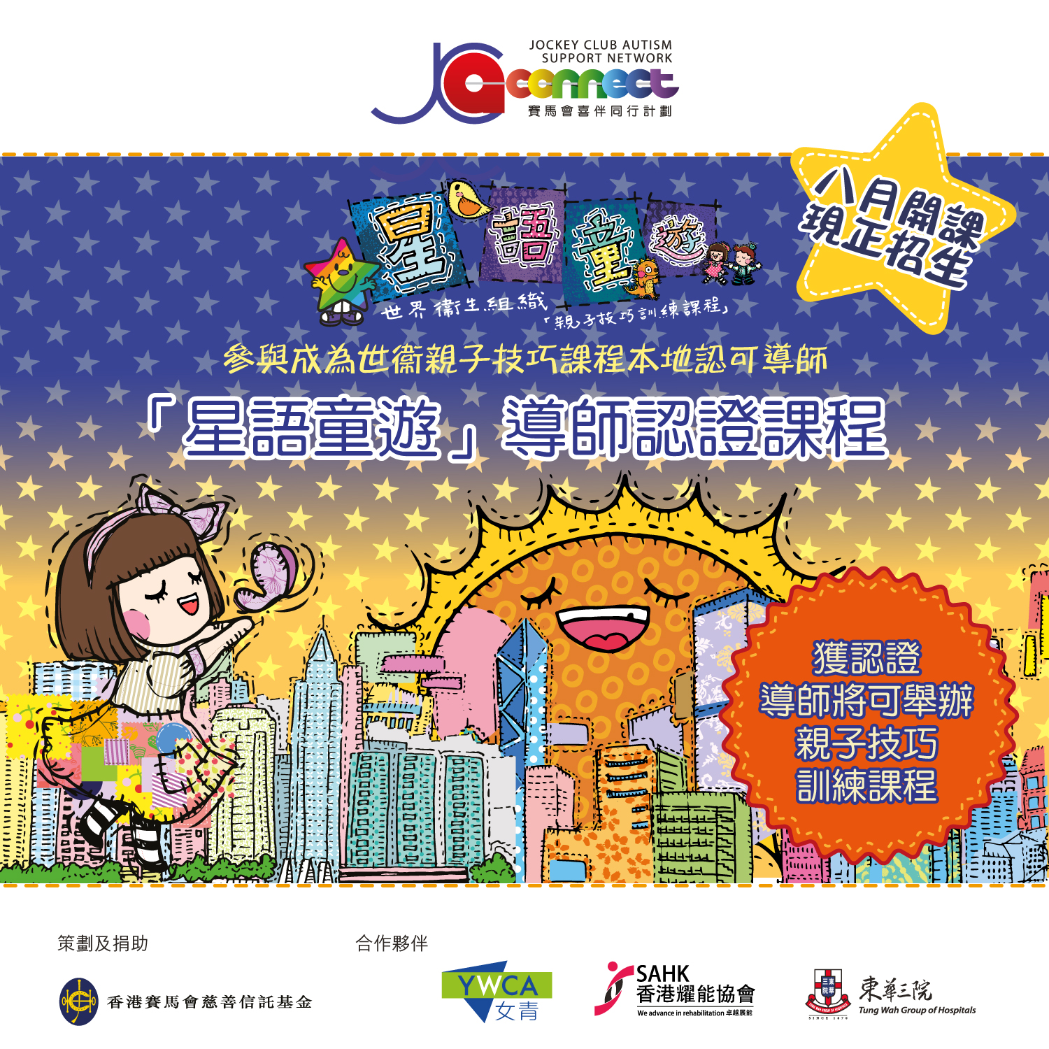 星語童遊導師認證課程為世衞認證的親子技巧訓練,適合有志在這個專業範圍發展的同工參加,成為世衞親子技巧課程本地認可導師,參與推廣計劃,令更多星爸星媽學識有效的親子溝通技巧。這個課程由「世界衞生組織」 和 「自閉症之聲 (Autism Speaks)」編寫設計, 目前已於全球 30 多個地區推行,並由香港大學及多間非牟利政府機構合力將課程內容本地化,務求貼合本地家長的需要。