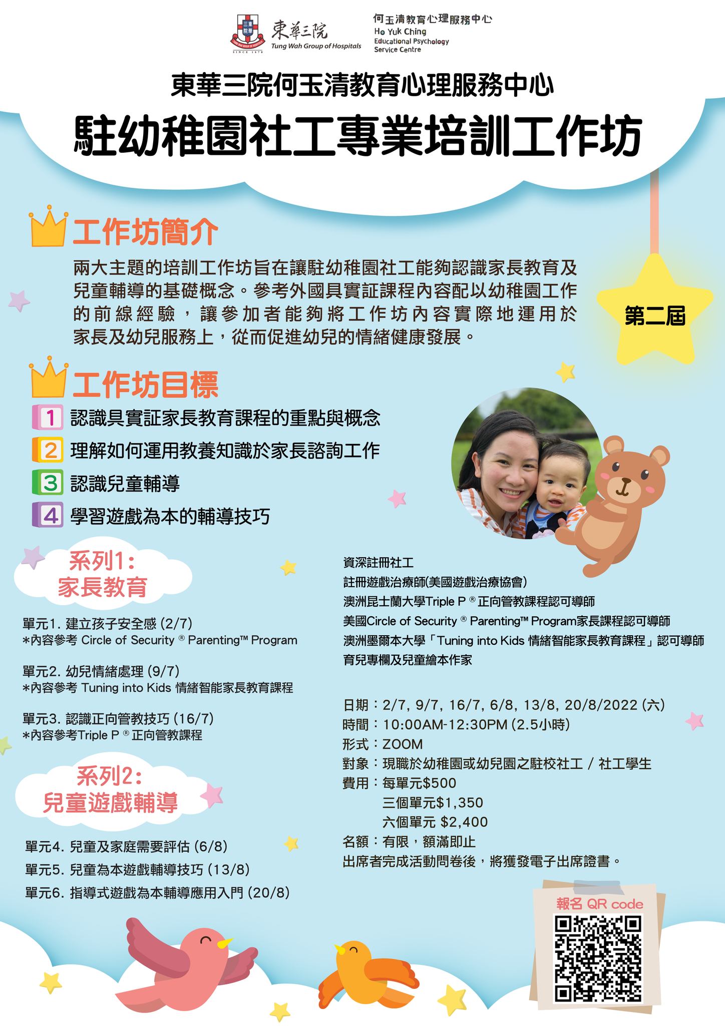 旨在讓駐幼稚園社工能夠認識家長教育及兒童輔導的基礎概念。