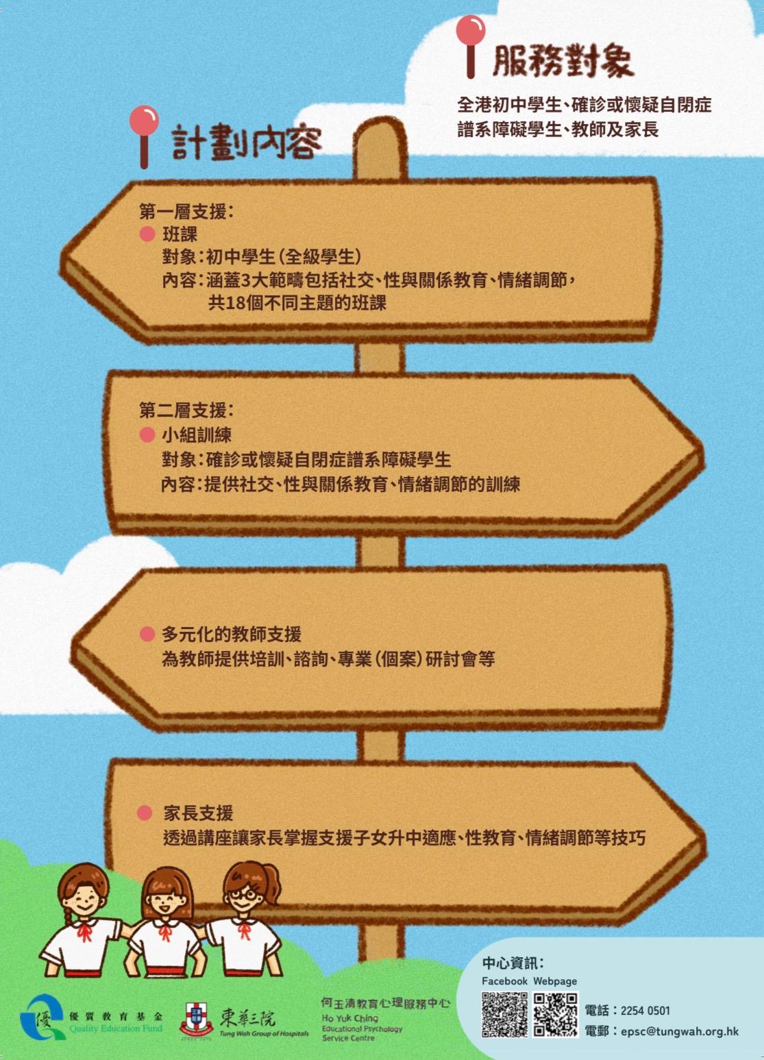 東華三院何玉清教育心理服務中心獲優質教育基金 (QEF) 資助,推行 「中學生社交技能發展 GPS 計劃」。我們期望透過多元化的介入,與學校攜手支援學生的成長發展。