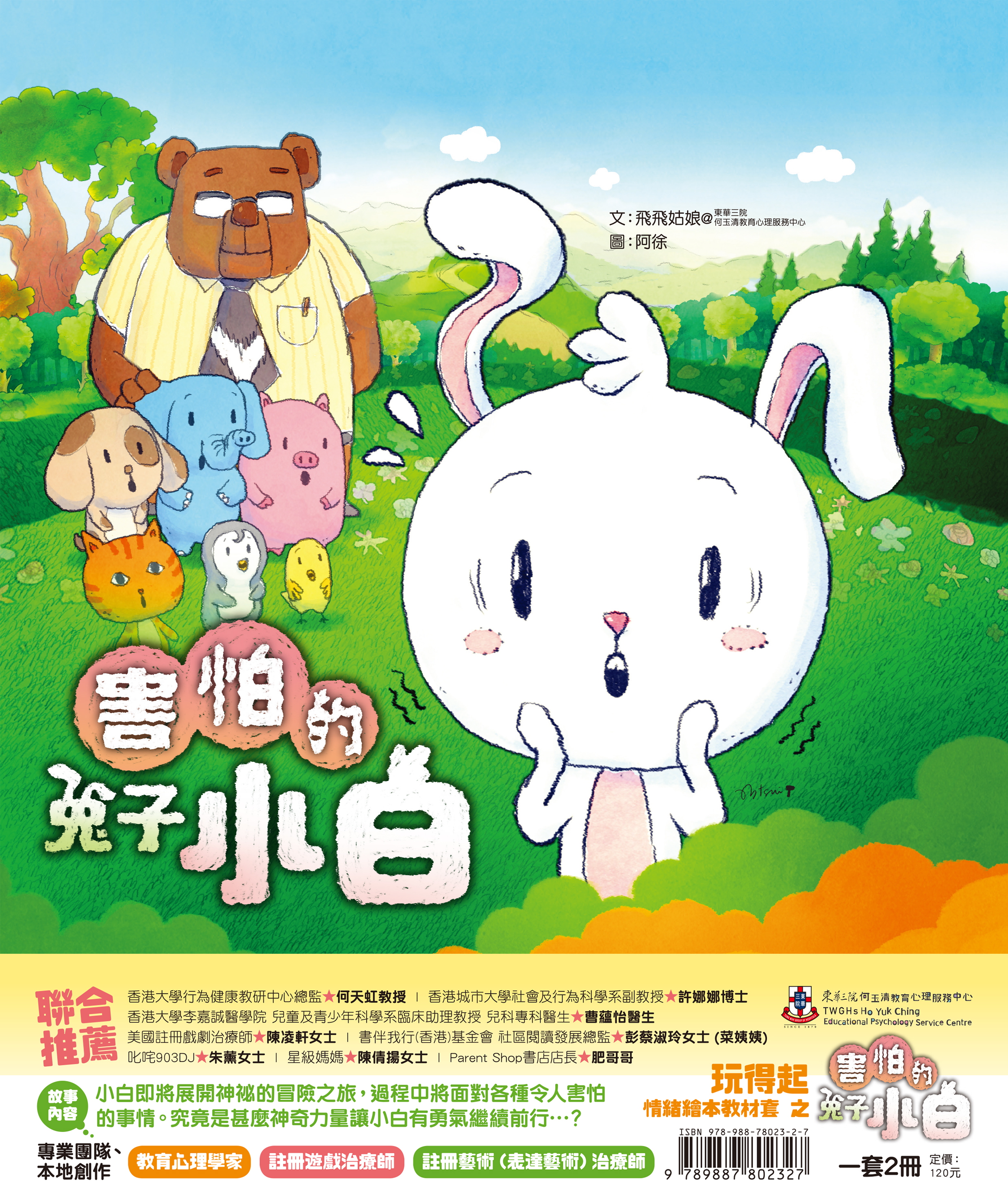 簡 介:《害怕的兔子小白》講述兔子小白在生活中和孩子們一樣充滿著「驚」。但牠在害怕的旅程上,因為有著陪伴、鼓勵和接納,小白開始懂得如何面對害怕的感覺。 我們期望透過輕鬆有趣的故事引起小朋友的共鳴感。讓他們認識和接納「害怕」的情緒,並透過教材套中的遊藝本,讓孩子重塑專屬他們獨一無二的情緒故事,也讓孩子畫出自己心中的勇氣繪本。